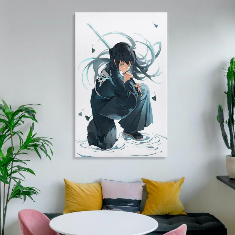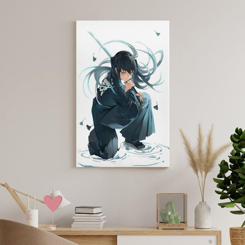 Short Description Elevate your gaming setup or bedroom with this premium canvas featuring the Mist Hashira in a dynamic, low-angle combat stance. The cool teal and deep black tones provide a sophisticated anime aesthetic that fits perfectly in modern enthusiast spaces.